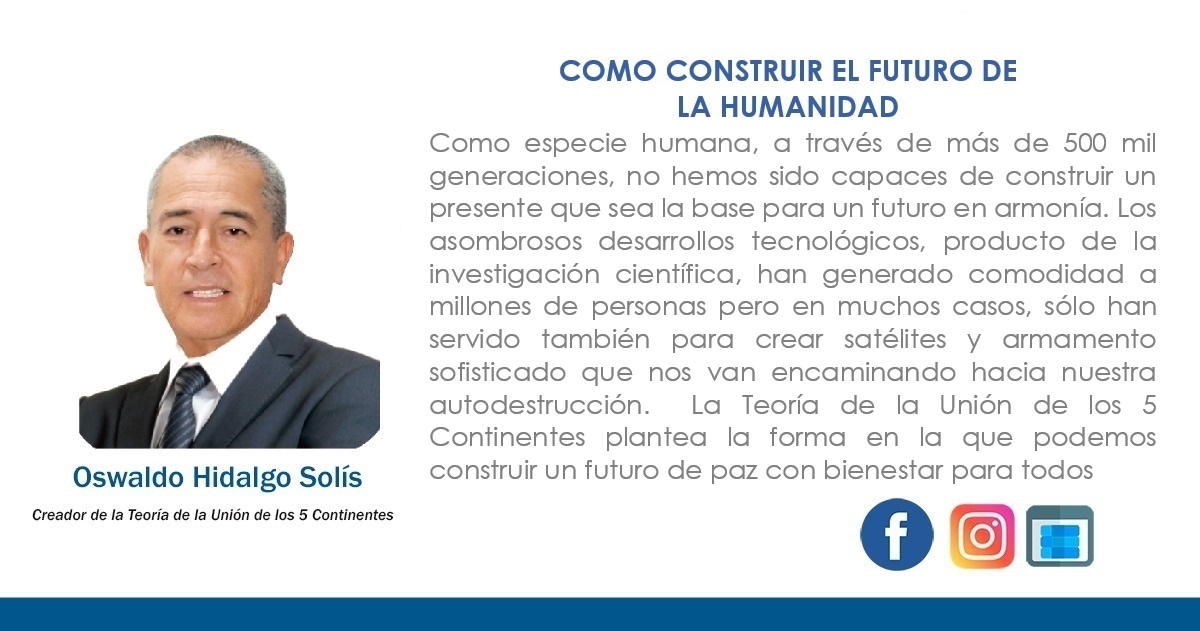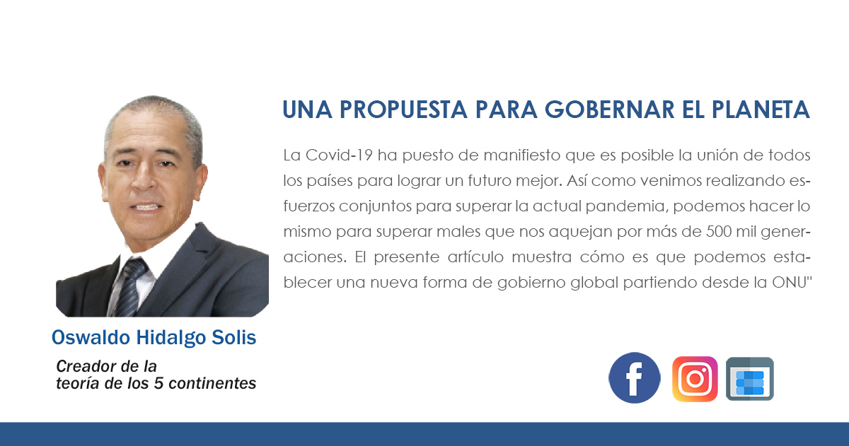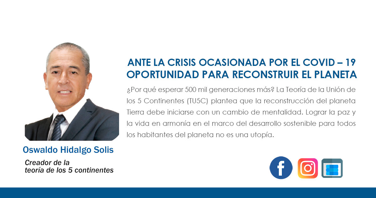 Después del Covid-19, el planeta Tierra ingresará una etapa que ya se empezó a denominar como “la nueva normalidad”. En tal sentido, consideramos importante exponer el planteamiento de la Teoría de la Unión de los 5 Continentes. Esta teoría (que cada día viene cobrando más vigencia) plantea que es posible instaurar el nuevo orden social en el planeta tierra en base a disciplina, trabajo y sacrificio.