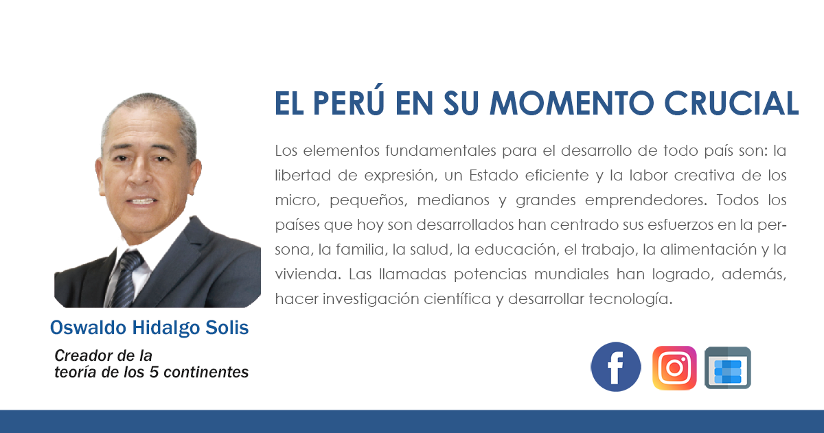 Los elementos fundamentales para el desarrollo de todo país son: la libertad de expresión, un Estado eficiente y la labor creativa de los micro, pequeños, medianos y grandes emprendedores. Todos los países que hoy son desarrollados han centrado sus esfuerzos en la persona, la familia, la salud, la educación, el trabajo, la alimentación y la vivienda. Las llamadas potencias mundiales han logrado, además, hacer investigación científica y desarrollar tecnología.