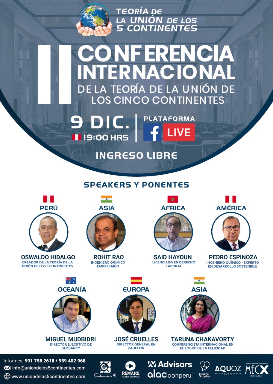Este 27 de noviembre se realizó la Primera Gran conferencia Internacional de la Teoría de la unión de los 5 Continentes, la cual congregó a expositores con una gran experiencia sobre la visión intercontinental.